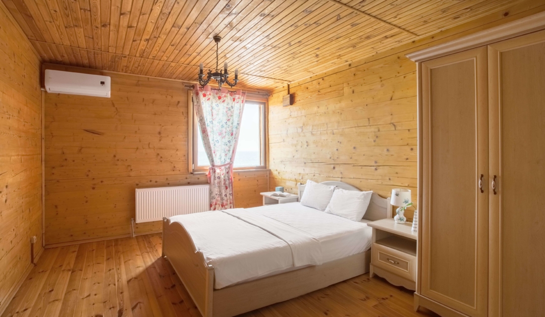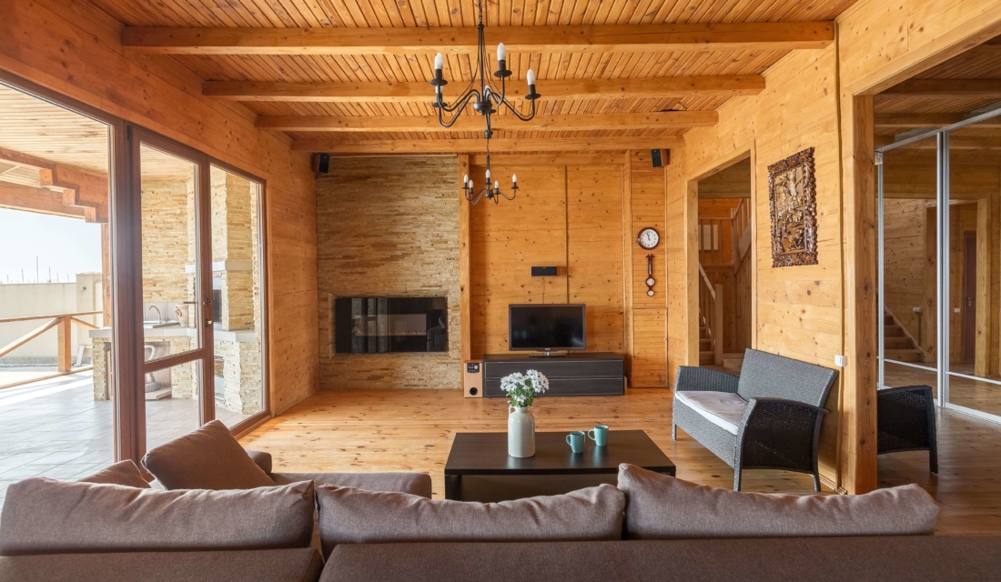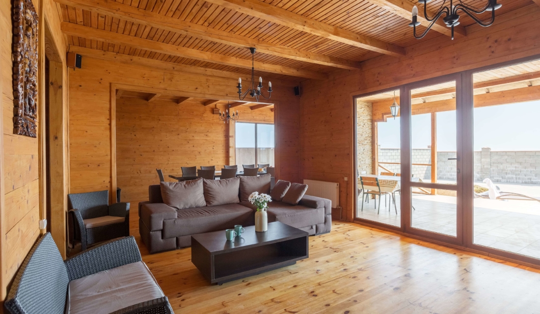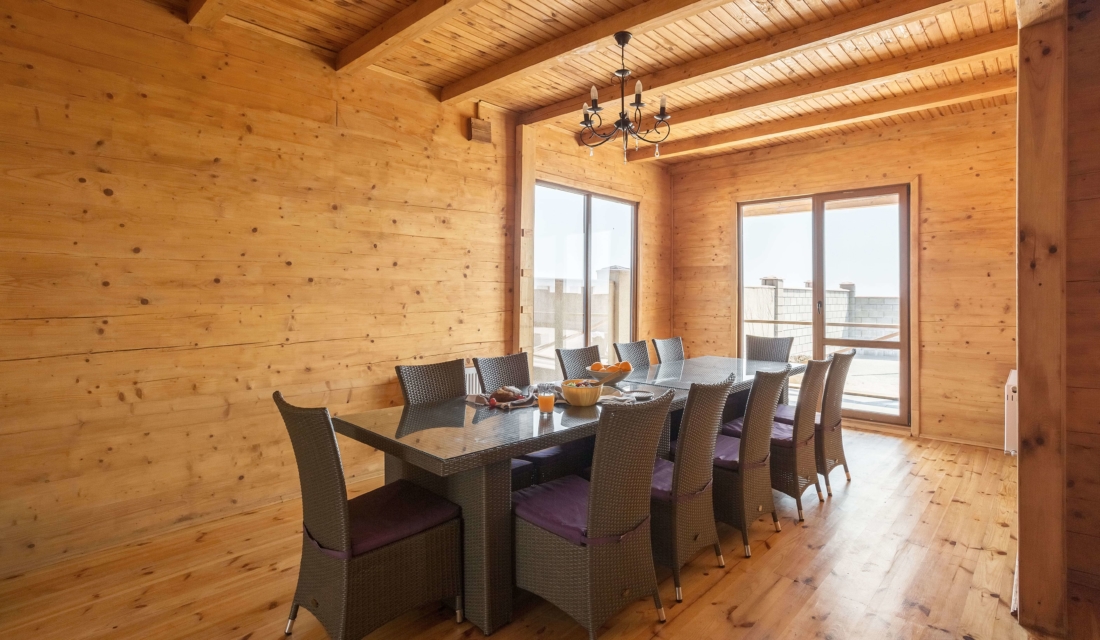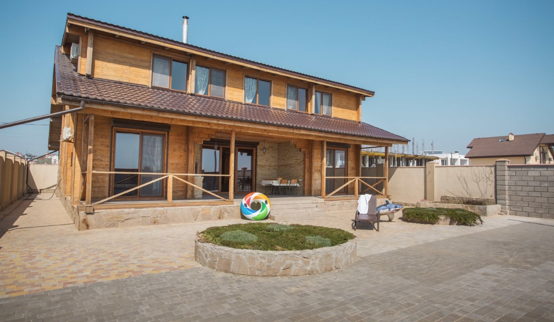 Новая двухэтажная вилла на 8-10 человек расположена всего в 5 шагах от моря. Выполнена из дерева в эко-стиле.