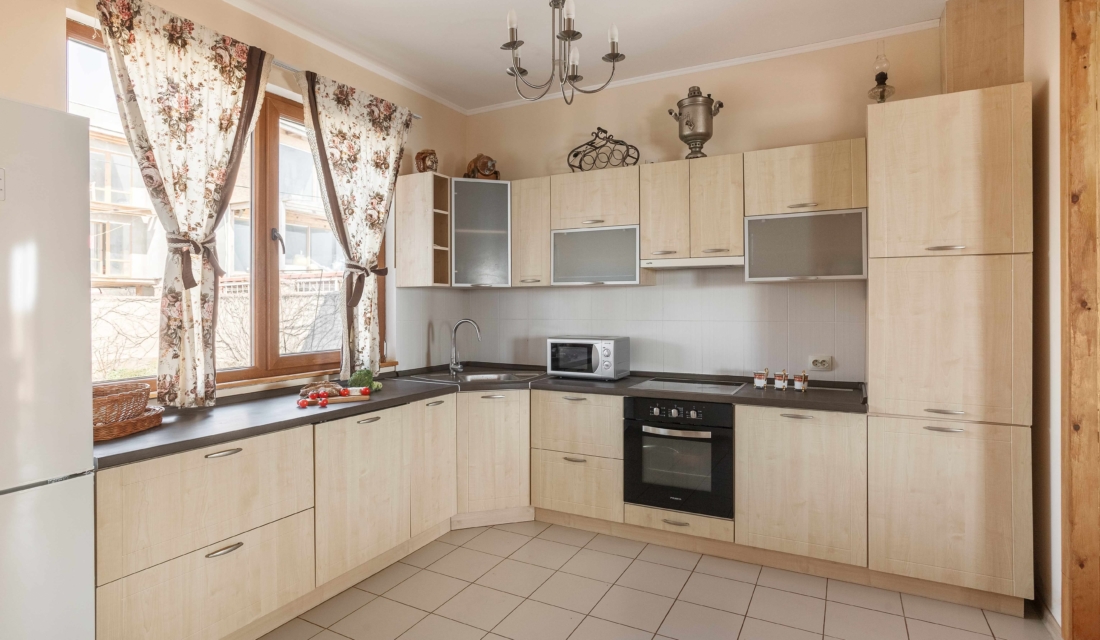 • большая кухня с холодильником, микроволновой печью, посудомоечной машиной и большим столом